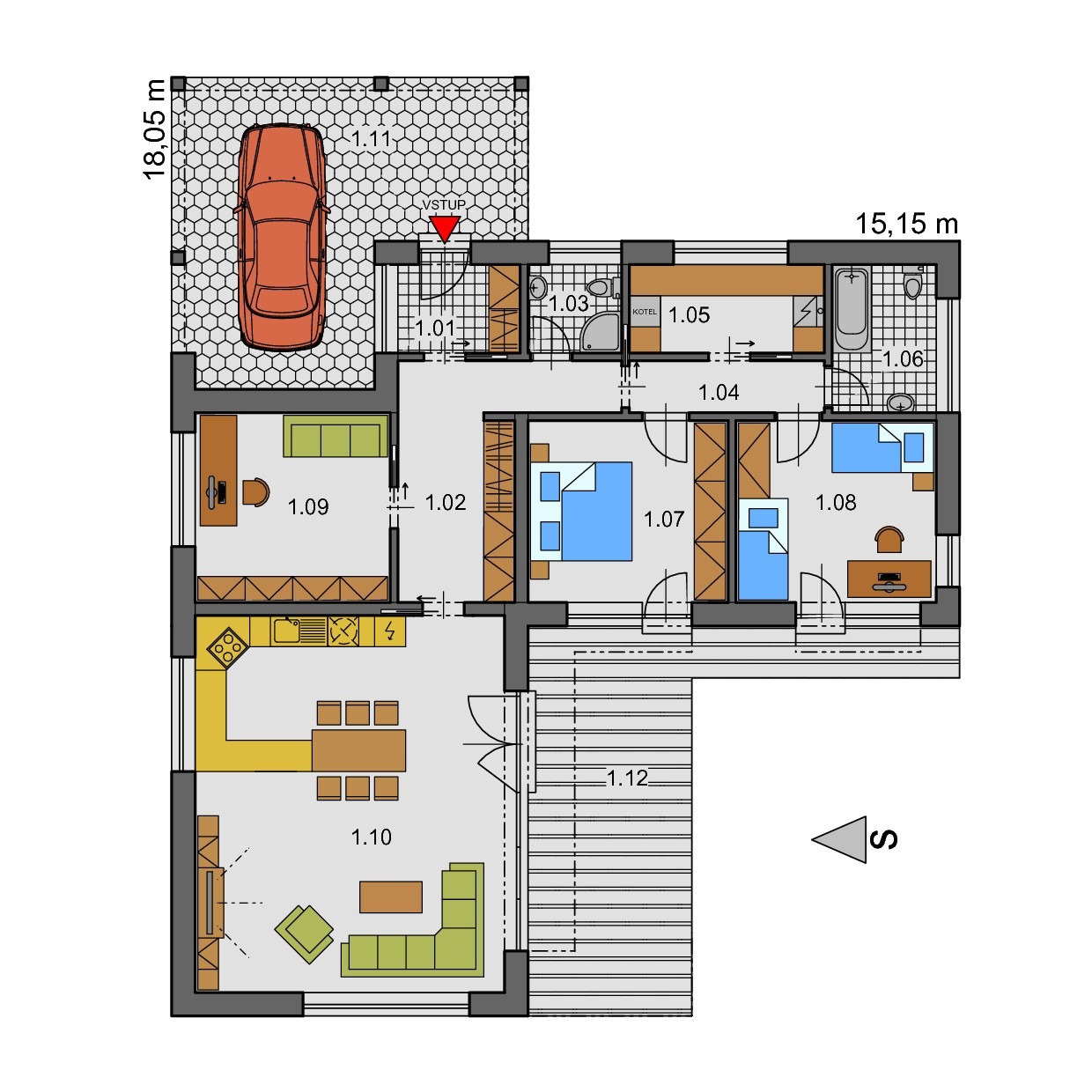V rámci cenové hladiny B) jsou veškeré úpravy, které nemění tvar a velikost rodinného domu (dějí se tedy uvnitř obvodových konstrukcí) zpracovány pro typový projekt v základní ceně ZDARMA.